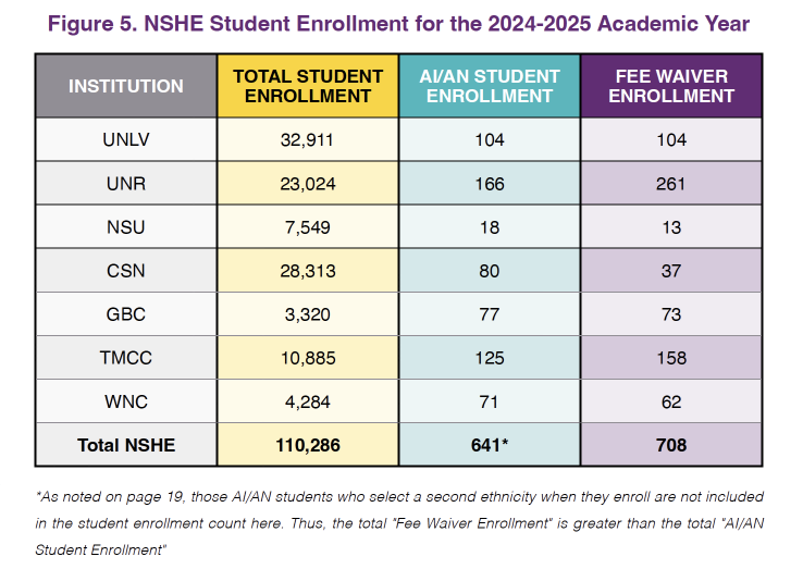 - Fee waiver recipients increased from 140 students (2021–22) to 708 students (2024–25) across NSHE institutions.